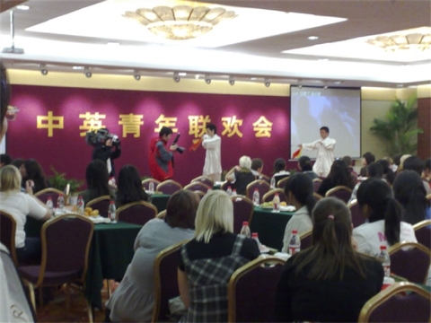 11月10日-11日,“中英400-青年交流计划”英国青年代表团一行65人来湖,开展为期两天访问。11月10日晚,崇德武术协会应团市委邀请参加了中英青年联欢会,现场展示了太极刀、太极拳,并通过推手等互动环节把活动推向了高潮。