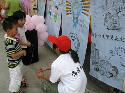 在社区广场上,大学生们通过海报向居民宣传世博会的由来与发展历史;通过有奖互动答题等形式让广大居民了解2010年上海世博会的基本情况;通过结合世博会主题“城市,让生活更美好”,加强节能环保知识宣传,让大家更好地了解世博,做时代的文明人。