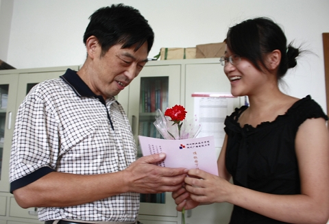 在第25个教师节来临之际,工商分院爱师团的成员们已经开始早早的奔忙起来。他们把印有“兹证明您兢兢业业,默默无闻,诲人不倦,鞠躬尽瘁,通过工商爱师团GSST园丁认证体系”的这样一份份学生心目中的“顶级园丁证书”送到了他们所尊敬的教师的手中。