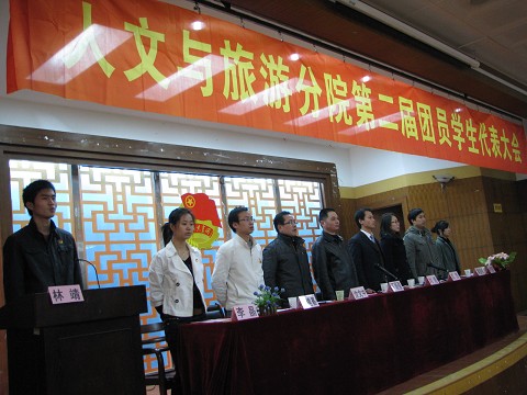分院丁国强院长宣布大会开幕。分院学工办主任、分团委书记成吉致开幕词。校团委副书记刘竞老师在会上指出,人文与旅游分院团委要在分院党总支的正确领导下,加强青年学生的思想教育,开展各项丰富多彩的校园文化活动。