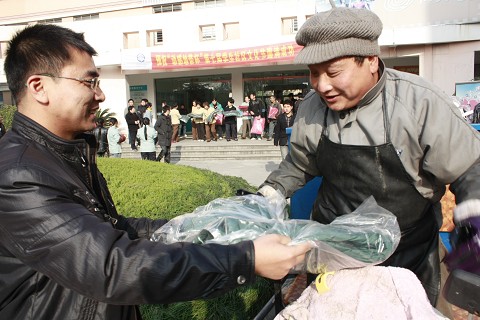 “非常感谢你们一直以来的关心和帮助,我们一定会把学生社区搞的更漂亮。”公寓保洁员程牛珍激动地握着领导的手说道。12月3日下午,学生社区党总支副书记、新宇教育发展有限公司副总经理刘青春、公寓中心主任高志强一行来到学生公寓走访慰问公寓保洁员,为他们送去了羽绒衣。