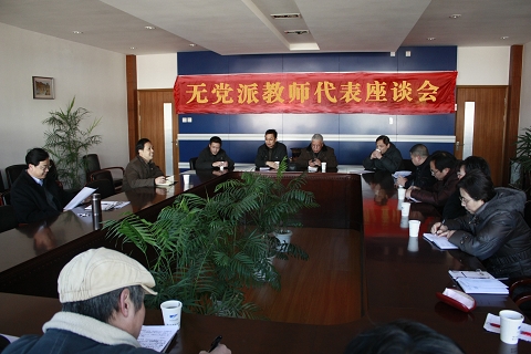 校党委书记杨柳在会上作总结发言,他指出,我校的无党派教师许多都是教师队伍的骨干,为学校的建设发展立下了汗马功劳。学校将进一步加强无党派教师的团体建设,搭建无党派教师建言献策的平台。他鼓励无党派教师要通过各种渠道多向学校提供宝贵的意见和建议,为我校的发展建设做出更大的贡献。