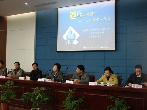 11月21日,父母大讲堂第二阶段启动仪式在湖州五中新校区隆重举行。省教育厅职成处胡惠华处长、省电大校长助理王友宝、市教育局等相关领导出席仪式。副校长沈琪芳出席并讲话。